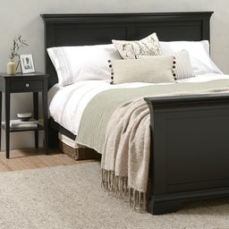 Just imagine yourself waking up in this french inspired bed. The heart of any bedroom this stunning double will bring dramatic theatre into your room. Painted a deep rich matte off-black its sophisticated appearance will work with any decor style and give you a great starting palette for adding colour or jewel tones in your room.