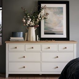 The timeless and practical design of our Chester Cream low and wide chest makes the perfect addition to your home. Every detail is built to last and with its four smaller drawers set over four larger ones are made to keep all your items organised and out of sight, leaving you free to admire its gorgeous classic cream paint finish.