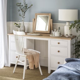 Anyone would love to have this elegant and sophisticated dressing table in their bedroom. Beautifully finished in a pure white paint to induce an air of calm, it has six drawers to keep all your styling essentials, make-up and accessories neatly stored. The expansive surface offers plenty of room for the matching mirror from the range, with space left over for jewellery boxes and perfume bottles, and it comes with both metal and wooden handles so you can accessorise it according to your personal taste or décor. And don’t forget, as well as the mirror, there is also a matching stool available so you can put together a complete look.