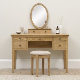 A slim and elegant design, our dressing table offers a practical spot for getting ready. With an array of different-sized drawers for keeping everything tidy and organised, the matching mirror and stool completes the set.