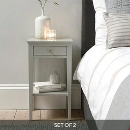 With room for all your bedtime essentials in its spacious drawer and space on top for a reading lamp, the sophisticated grey paint finish of this smart and sturdy bedside table will sit happily in just about any décor, be it modern or traditional, and will make the ideal companion for one of our Chantilly beds. In an elegant design that’s eye-catching without being overly fussy, it comes complete with painted wooden handles or metal ones so you can apply the finishing touch according to your taste.
