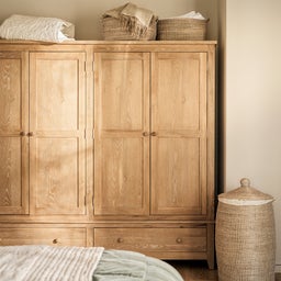 Thoughtfully designed, the Inglesham quad wardrobe offers generous storage in every section. With plenty of hanging space and two large drawers for effortless organisation, it’s designed to house all your belongings.