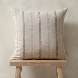 Lovingly printed and sewn here in the UK, this 100% linen square cushion features Madder Cutch & Co’s Blossom Stripe in a Pale Rose colourway.