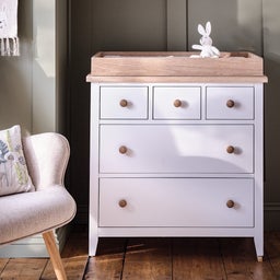 The Chester Pure White Baby Changing Unit is the perfect addition to any baby's nursery. With its simple design and solid wood frame, this chest of drawers is built to last and will see your child through their early years, from newborn to toddler. Its compact size means it will fit in any room, and with five spacious drawers, you'll have plenty of space to store all those baby essentials. Whether you're a first-time parent looking to create a practical baby changing area or need to add stylish storage to your little one's bedroom, the Chester Pure White Baby Changing Unit with removeable baby changing topper has got you covered. The baby changing topper is suitable for babies up to 12 months old (or 11kg) and designed to fit a standard-size flat baby changing mat (75cm x 47cm).