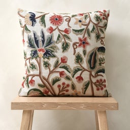 Crafted using the traditional crewel embroidery technique, this cushion celebrates centuries of craft. Bold wool threads bring the floral design to life bringing a splash of colour to your space.