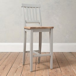 Our beautiful Chester dining chair is now available as a bar stool. The classic spindled back chair has a classic dove grey finish, paired with a comfortable oak seat that complements a variety of colour palettes.