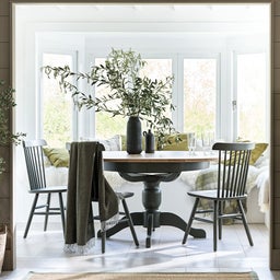 Our Round Extending Dining Table is the prefect addition for smaller spaces. Standing Firm on its chunky pedestal, its finished in our Chester Forest Green paint that will suit both classic and modern decors, and a contrasting oak and high quality oak veneer top that will withstand the rigours of daily family use. When that extra room is needed, it opens out to 145cm, to easily seat six diners. Pair with our Chester Forest Green Dining Chairs.