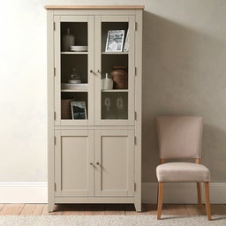 A lovely focal point in any living or dining room, our Chester Limestone display cabinet brings a touch of modern country elegance. Behind two strong, tempered glass doors, there’s plenty of space to display favourite glassware and treasured ceramics safely. Crafted to last, the frame is finished in our soft Chester Limestone paint, inspired by the calming tones of the Cotswold countryside.