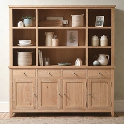 If space is what you want then this generously proportioned dresser unit will give you ample room to hide away anything you need to in the four cupboard spaces below and still give you shelving space galore to display books, ornaments, photos or even a vase of fresh flowers.