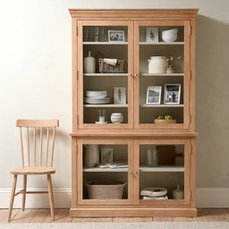 With a solid oak frame and tempered glass doors, this dresser is perfect for storing and displaying your favourite pieces. Inside, the soft Chester Limestone painted finish gives a light, elegant backdrop, while generous shelving keeps everything beautifully organised.