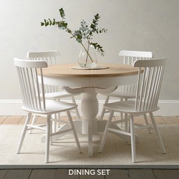 There’s something just a bit more sociable about a round dining table. This gorgeous one, along with the matching chairs, will bring a touch of contemporary country chic to your dining space too, with its sophisticated pure white paint finish and contrasting waxed oak and high quality oak veneer top. Standing firm on a central pedestal, it opens out to 145cm when you need extra room but is only 110cm unextended, so won’t take up too much space if your kitchen or dining room is on the small side. Four chairs complete the seat.