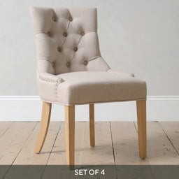 Make dining an altogether classier affair with this beautifully made chair. Standing firm on oak legs, it’s been upholstered in a stone linen fabric and features a curved button back that will almost give you a hug at the dinner table. A cushioned seat ensures your comfort for as long as you’re sitting down, and a set arranged around our oak dining tables will set the scene for dining in style.