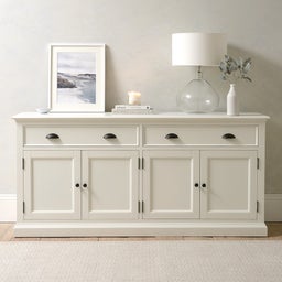 We've given our much-loved Stow range a new look. Painted in a soft warm white, our extra large sideboard offers an abundance of storage and is handcrafted using traditional dovetail joins and mortise and tenon joints for added durability.