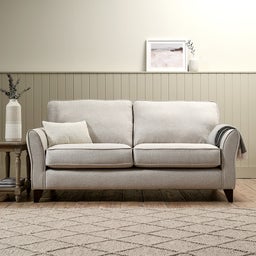 Exuding traditional elegance, our Fletcher 3 seater sofa is perfect for both classic and contemporary homes. Handcrafted in the UK by master upholsterers, it’s made using the finest quality materials for lasting quality. The supportive seat cushions hold their shape without the need for plumping, while the classic sloping arms and luxurious fibre filled backs offer the ultimate sink-in comfort. The House Weave fabric in natural is wonderfully hardwearing, making it a popular choice for busy households. Its soft, neutral tones, effortlessly complement any space. With our next-day delivery options, you can start enjoying your refreshed living space as soon as tomorrow.