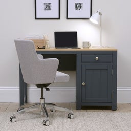 A handy, convenient and trusty design, our Chalford Inky Blue Single Pedestal Desk boasts a useful tall cupboard - ideal for storing a computer tower - together with a top drawer for keeping your workspace tidy and clutter-free. This range includes a variety of office 'building blocks' that can be added for additonal storage or space if required too.