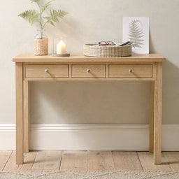 Begin every day at our beautiful Inglesham Oak console desk – whether you’re getting ready for the day or writing notes, there’s plenty of space to store your daily essentials in the three durable, dovetail-framed drawers.