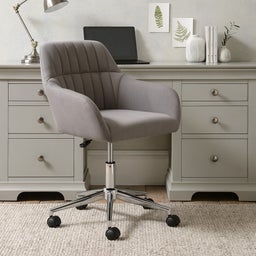Upholstered in a Grey fabric, our Arlebrook Office Armchair will bring superior comfort to your home office. An adjustable lever allows you to easily set your preferred height for better productivity, while the chrome-style base adds a modern and stylish feel.
