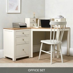 In need of a new office space to inspire motivation and creativity? Our wholly practical Chalford Painted Corner Desk set includes a practical desk topper to store letters and stationery, together with a handy filing cabinet for keeping all your papers safe and secure. Its neutral painted base means it'll complement your existing decor too.