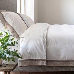 Featuring an intricately woven lace border, Hatherley’s laundered finish gives a lovely, soft handle. We chose a 200 thread count, pure cotton percale for this bed linen, which offers outstanding durability and a natural crispness. This distinct weave makes for a smooth, matte touch that feels cool against the skin.