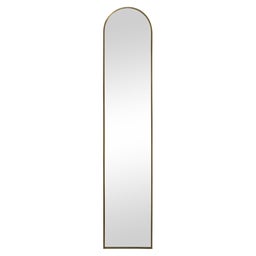 Whether resting in a bedroom or dressing room to help you get ready or styled in your living room to bring extra light, our Foxcote mirror features a graceful arched top. The slim metal frame is powder-coated in a brushed bronze finish for a timeless, elegant look.