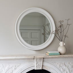 Our porthole style mirror with its chunky wide wooden frame will look great as a focal point in any living space. Finished in a soft white paint colour..