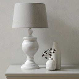 Exuding elegance, our Anderson Table Lamp will make the ideal addition to your home. For the living room or bedroom, it's the perfect reading lamp for quiet evenings in. Its beautifully carved wooden base is complemented with a subtle muted grey shade which is ideal if you're fond of a more neutral colour scheme in your home.