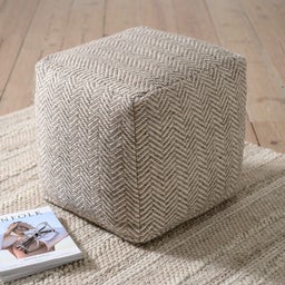 When I received the pouffe, it was of a good quality but I'm afraid it did not exactly match the image online in that the 'herringbone' design was not as refined as shown, and more of a chunky knit appearance. The cube shape was also not as compact as shown - so unfortunately I had to return it.