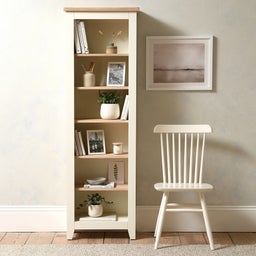 Tall enough to be an impressive presence and slim enough to fit just about anywhere in your home, when it’s filled with your books, this superbly crafted bookcase will look even more handsome than it does already. The frame has been painted a sophisticated cream that will suit most decors, while the adjustable shelves and bookcase top have been left natural and waxed to allow the characterful grain patterns to be shown at their best. And if books aren’t your thing, it will look equally delightful filled with a few of your favourite collectables or ornaments.
