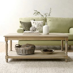Thoughtfully designed with clean lines and beautifully turned legs, our French-inspired Camille coffee table is perfectly proportioned to make a statement centrepiece in any living room. It’s given a hand-applied limewash finish to bring out the oak’s natural weathered grain.