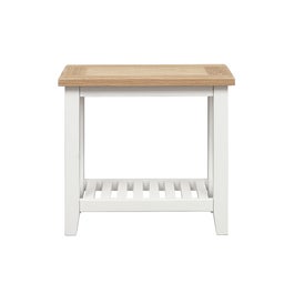 Nestled beside your sofa, this side table keeps essentials close at hand, with a space on top for a lamp or drink and a slatted lower shelf for your current read. Crafted to last, its frame is finished in a clean Pure White paint.