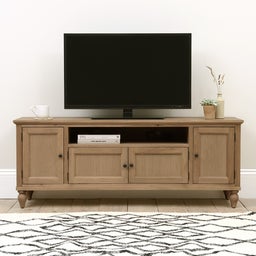 If you're looking for a large TV stand that combines a practical design with a beautifully timeless finish, this Elkstone Oak TV cabinet includes a tactile solid oak top, black antiqued handles and handturned feet to bring an elegant feel, while the tenon and mortise jointed cupboards offer smart and spacious storage.