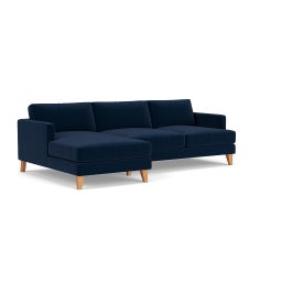 Jackson Chaise Large Left Hand in Matt Velvet - Deep Blue with Light legs