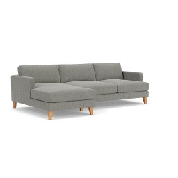 Jackson Chaise Large Left Hand in Rustic Weave - Grey Marl with Light legs