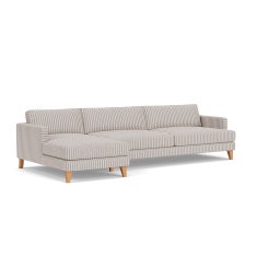 Jackson Chaise Extra Large Left Hand in Kingham Stripe - Indigo with Light legs