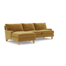 Morris Chaise Large Left Hand in Matt Velvet - Mustard with Light legs