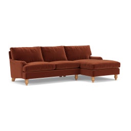 Morris Chaise Large Right Hand in Matt Velvet - Brick with Light legs