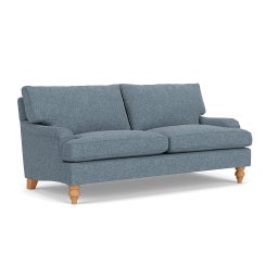 Morris 3 Seater Sofa in Aquaclean Oxford - Mid Blue with Light legs