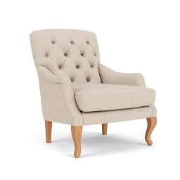 Made to order, we love Olivia’s traditional details. With a fixed buttoned back and solid beech legs, Olivia’s soft, sloping arms and deep cushioned seat provide a comforting spot to rest.