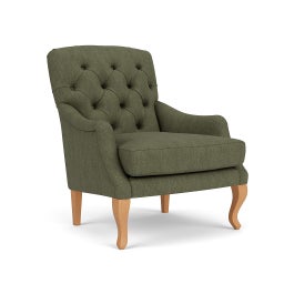 Made to order, we love Olivia’s traditional details. With a fixed buttoned back and solid beech legs, Olivia’s soft, sloping arms and deep cushioned seat provide a comforting spot to rest.