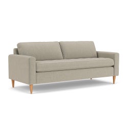 Saxon is a contemporary take on mid-century form – featuring deep, generous seating and a single bench cushion with pinching detail for a tailored look. Its clean-lined frame is balanced by straight, gently rounded wooden feet, creating a crisp, polished style. Available with a choice of seat fillings: go for the cushion feel you love – whether cocooning feather filled or supportive, low-maintenance fibre.