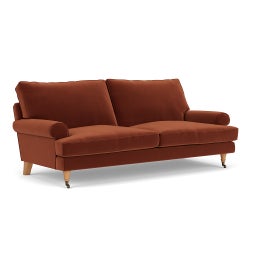 Stewart 3 Seater Sofa in Matt Velvet - Brick with Light legs