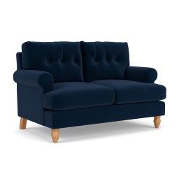 Talbot 2 Seater Sofa in Matt Velvet - Deep Blue with Light legs