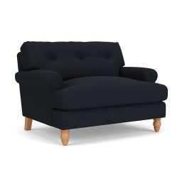 Talbot Love Seat in House Linen Mix - Ink with Light legs