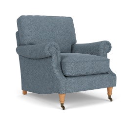 Taylor High Back Armchair in Aquaclean Oxford - Mid Blue with Light legs