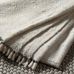 With its subtle pale blue detailing and softly textured weave, this throw is an easy way to introduce warmth and character to your home. Finished with delicate tassels for a relaxed touch.